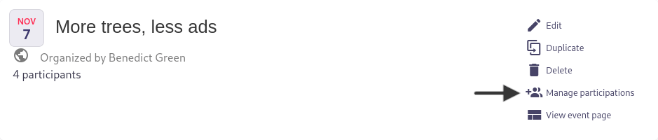 As the event creator you can see who particpates in an event. To do so you can click either: